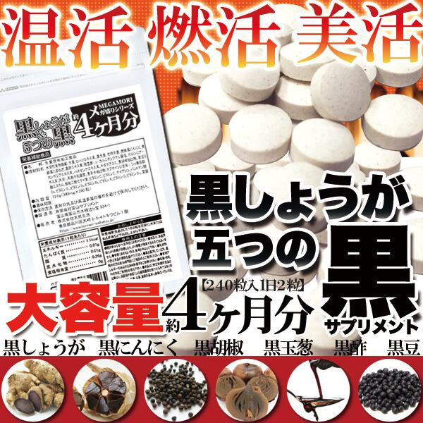 【ネコポス出荷】メガ盛り★黒しょうが&5つの黒サプリ約4ヵ月分・・・・・わがままダイエッター注目!!美容業界も大絶賛の話題の黒しょうが&5つの黒サプリががどっさりメガ盛りで登場!!