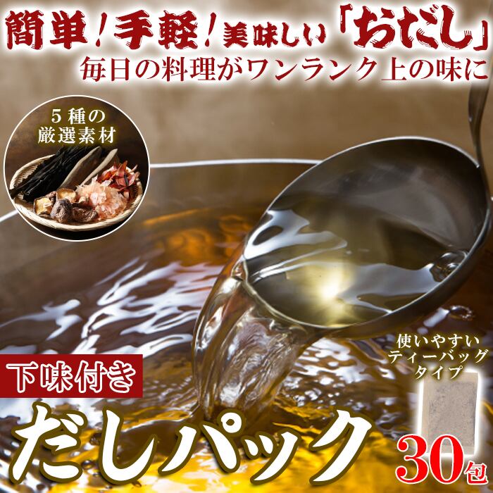 【ゆうパケット出荷】水出しOK・レンジでも簡単!美味しい「おだし」下味付きだしパック30包(8.8g入り5包×6袋)・・・・・厳選!5種の贅沢素材使用!使いやすいパックタイプ!
