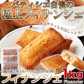 有名洋菓子店の高級☆フィナンシェ1kg≪常温≫・・・・・口いっぱいに広がるアーモンドとバターの風味!!仏蘭西風洋菓子店のパティシエが作る自慢のフィナンシェを大容量でお届けします。